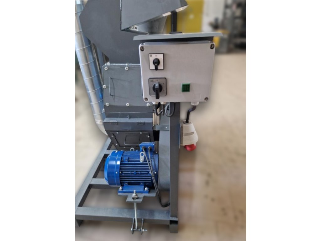 Odsávací ventilátor poháněný elektromotorem s velkým výkonem výrazně zvyšuje účinnost drtiče (nezanáší se otvory síta) a také umožňuje drtit i vlhčí materiály. K sítu je také snadný přístup pomocí inspekčních otvorů pro kontrolu čistoty síta.