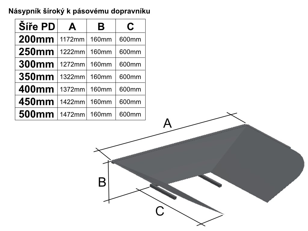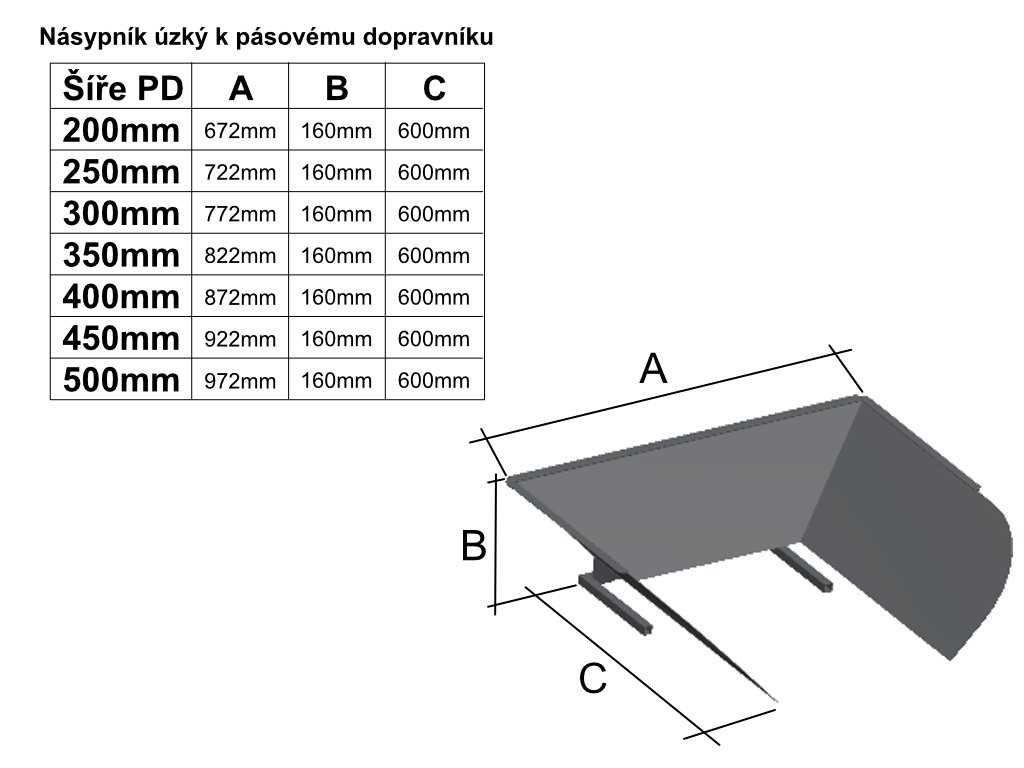 Rozměry násypníku: podle šíře pásu(20-50cm)